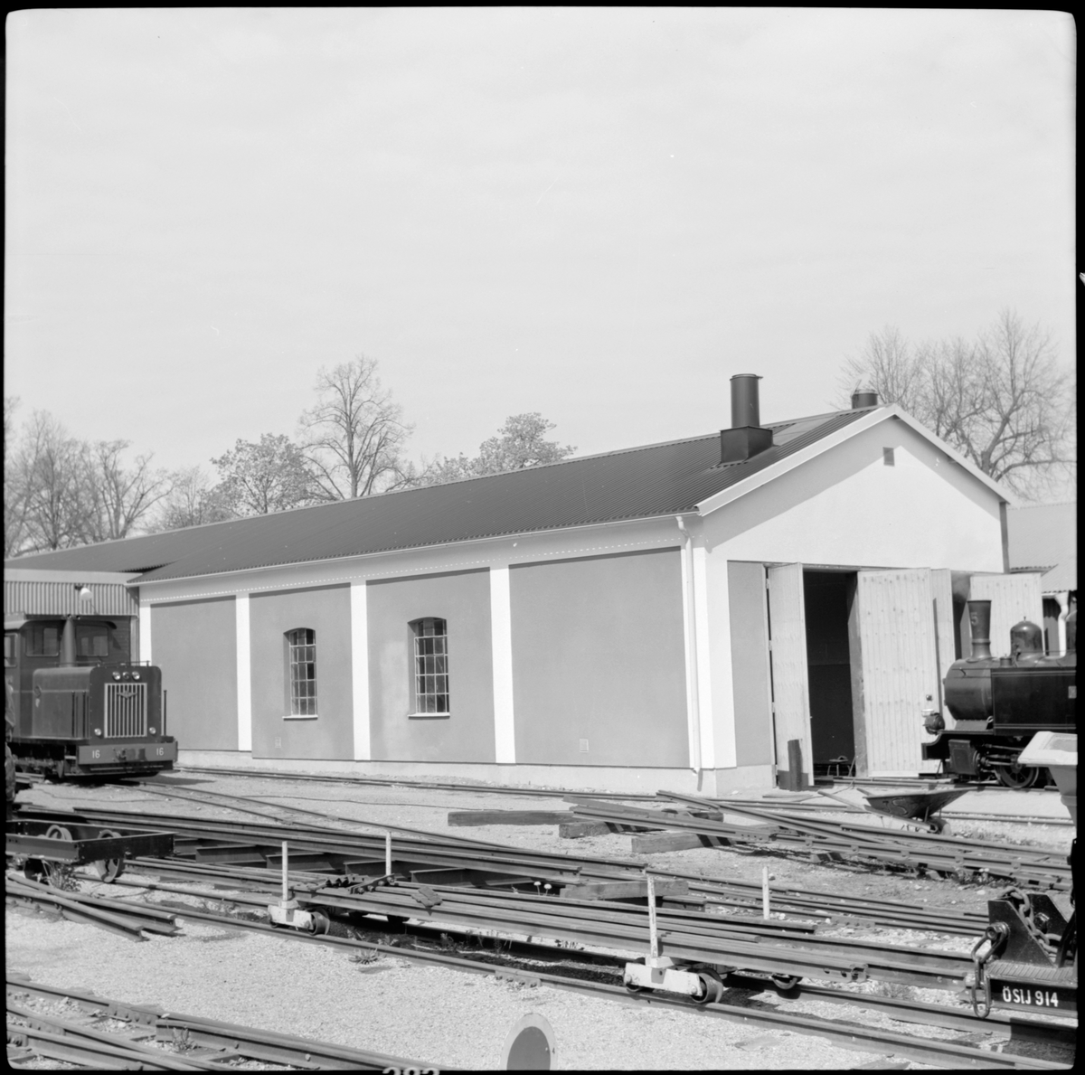 Öster Södermanlands museijärnväg verkstad. Längst till vänster syns Östra Södermanlands Järnväg, ÖSIJ lokomotor 16 "Aspa" och längst till höger syns Östra Södermanlands Järnväg, ÖSIJ lok 5 "Hamra".