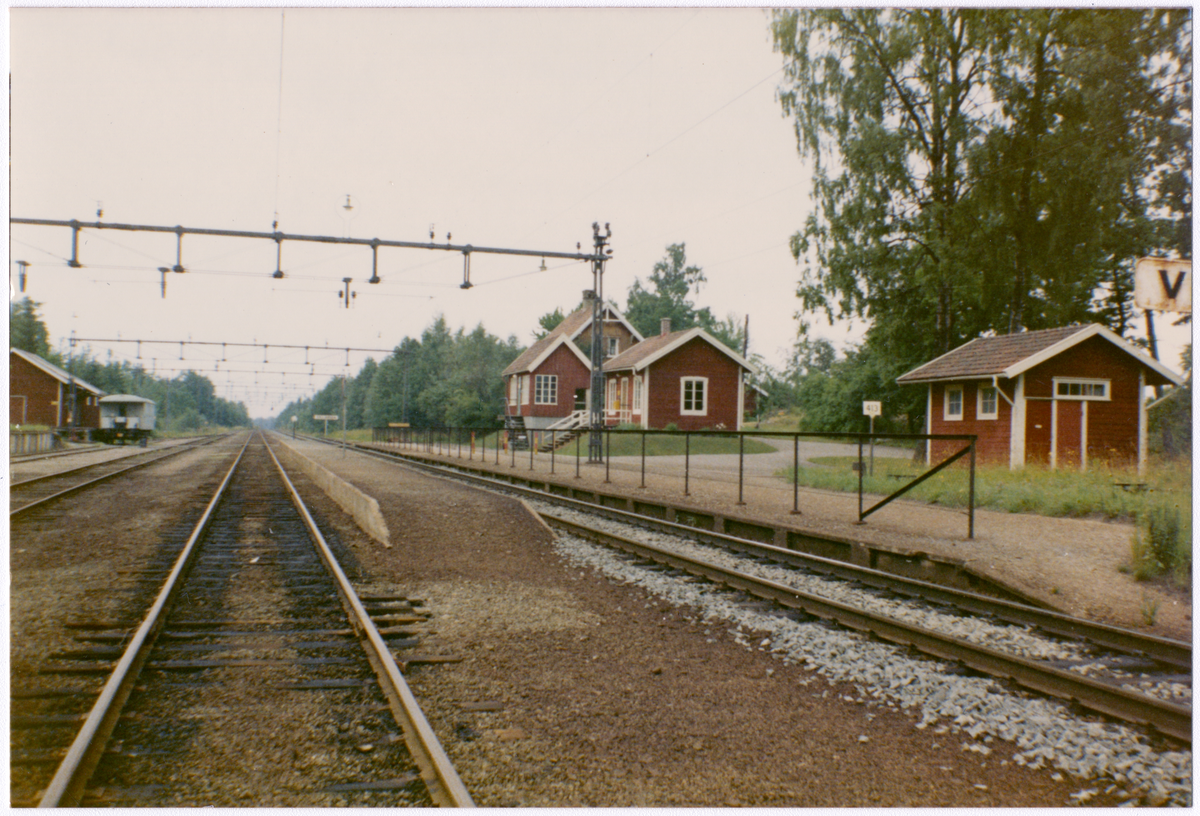 Bergslagernas Järnvägar, BJ, Trafikplats anlagd 1902. Envånings stationshus i trä. Bangården utökades 1920. Mekanisk växelförregling. Ställverksbyggnad invid stationshuset.