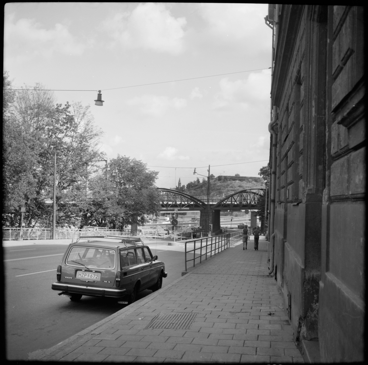 Tegelviksviadukten på linjen mellan Stadsgårdens station och Fåfängan, Saltsjöbanan. Järnvägsbron över Folkungagatan. I bakgrunden syns Fåfängan och Danvikshem.