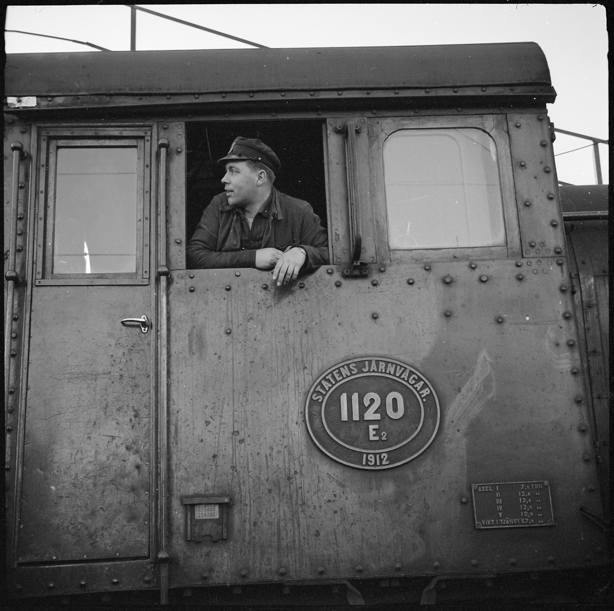 Karl Johnsson i förarhytten på SJ E2 1120, Statens Järnvägar.