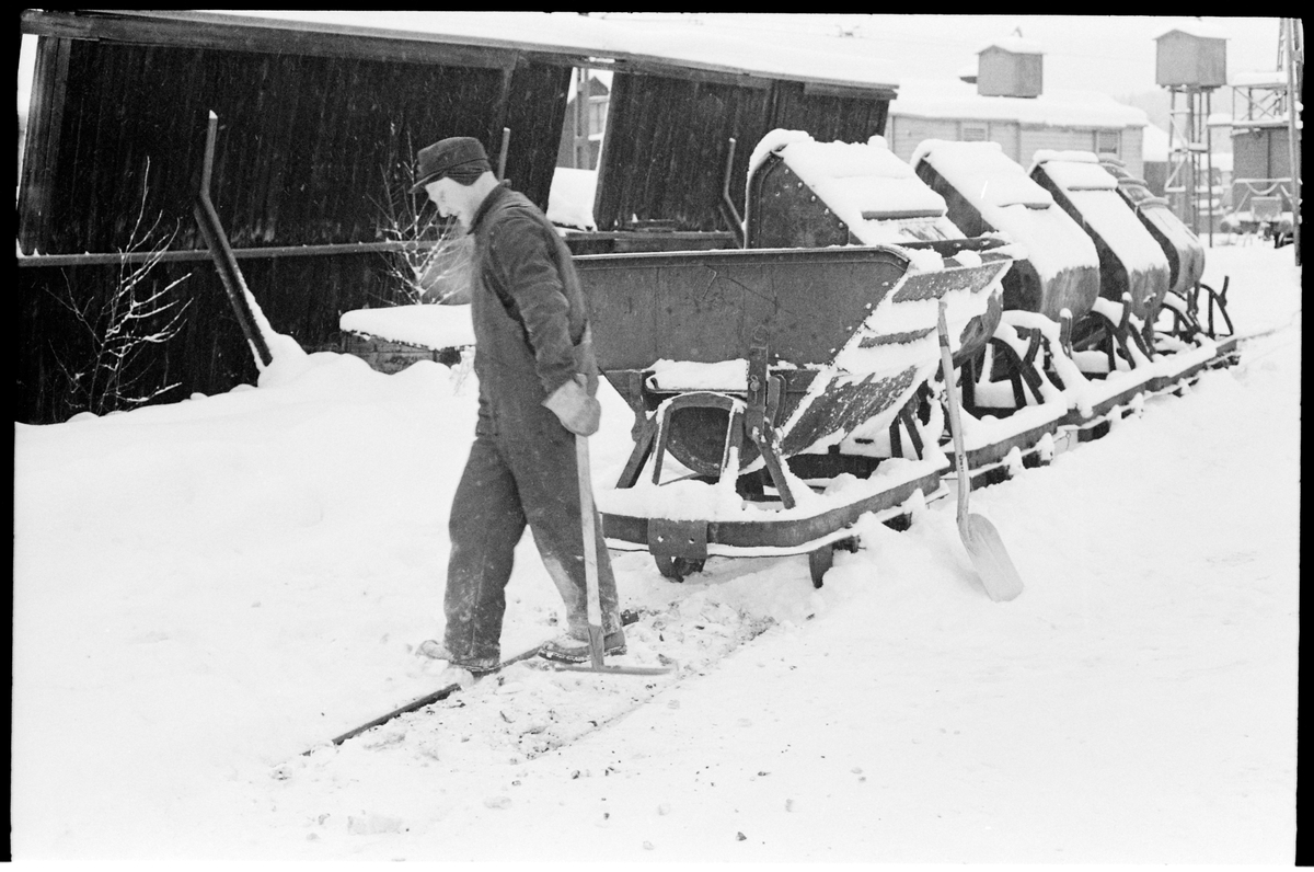 Titel: Stig Fagerström snöröjer i kolgården.
