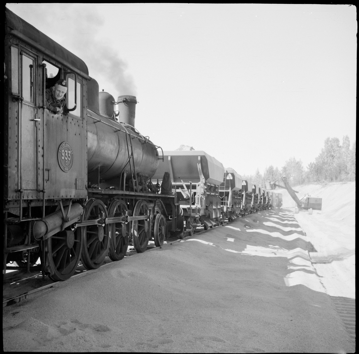 Gruslastning i Gårdnäs grusgrop. Statens Järnvägar, SJ E2 933.