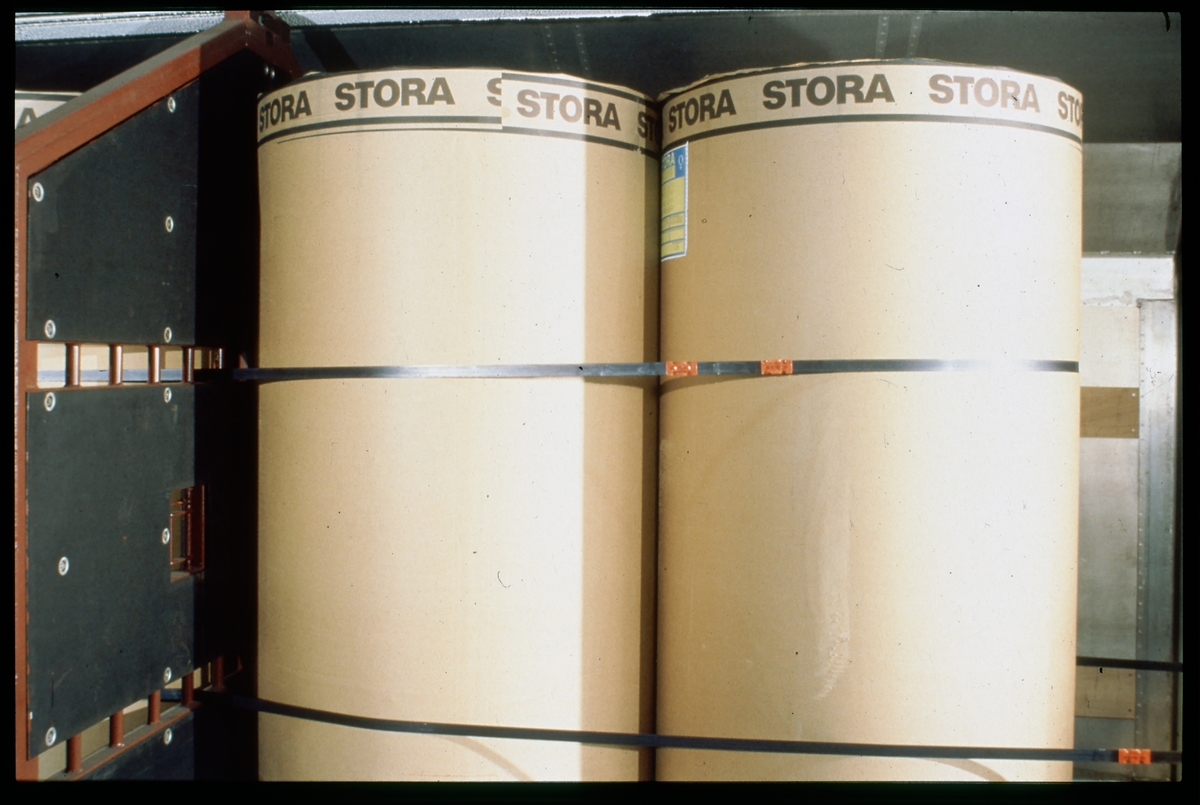 Surrade pappersbalar i en sluten vagn SJ Hbis.