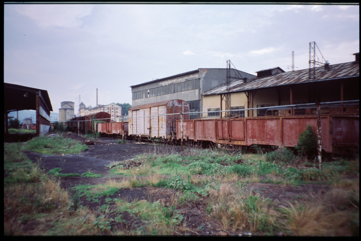 Industrispår med godsvagnar i Cherven Bryag, Bulgarien.