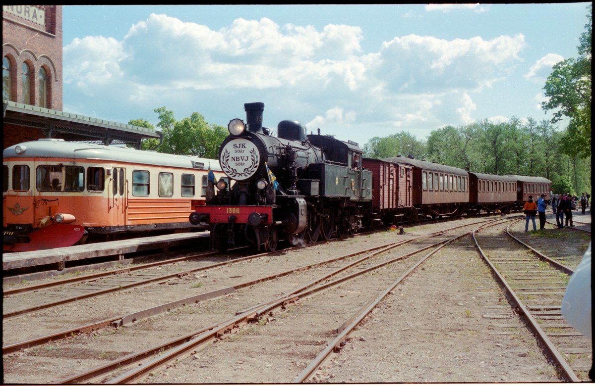 Statens Järnvägar, SJ Sb 1306 och SJ Y8 1125 på Nora stad station vid Svenska Järnvägsklubben, SJK 50 års firande.