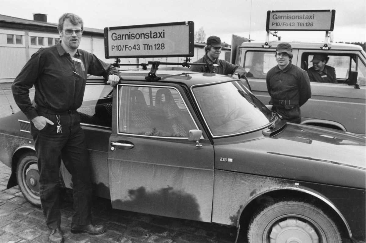 Fanjunkare Roine Hellberg, chef TPC, med nymodigheten Garnisonstaxi utanför by 101 på Kasgaren.