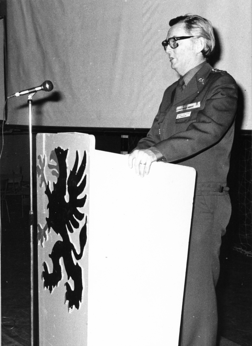 Information i gymnastiksalen, i talarstolen öv 1. Åke Eriksson, för första gången "öga mot öga" med alla anställda.