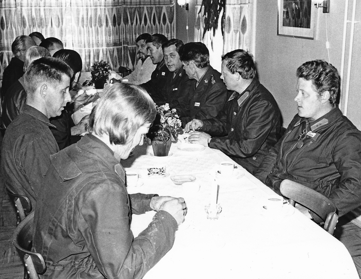 Fr.h. på bordets bortsida; fj Ulf Larsson, fj Stig Gustafsson, kn Karl-Åke Bergström, övlt Björn Bernroth, kn Yngve Pettersson och fm Lars-Erik Ohlsson.