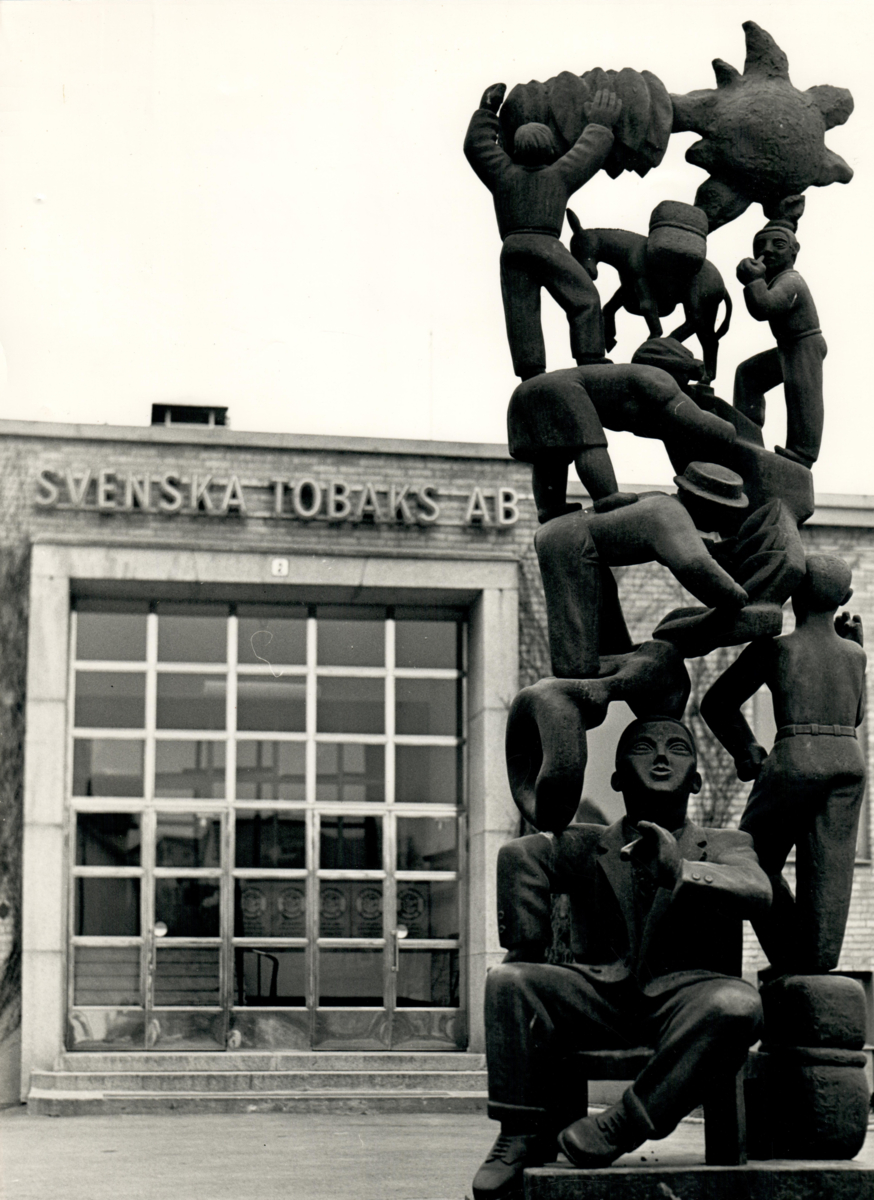 Bengt Amundins skulptur "Tobak" utanför Svenska Tobaksmonopolets kontor i Nässjö. Skulpturen tillverkades 1946.