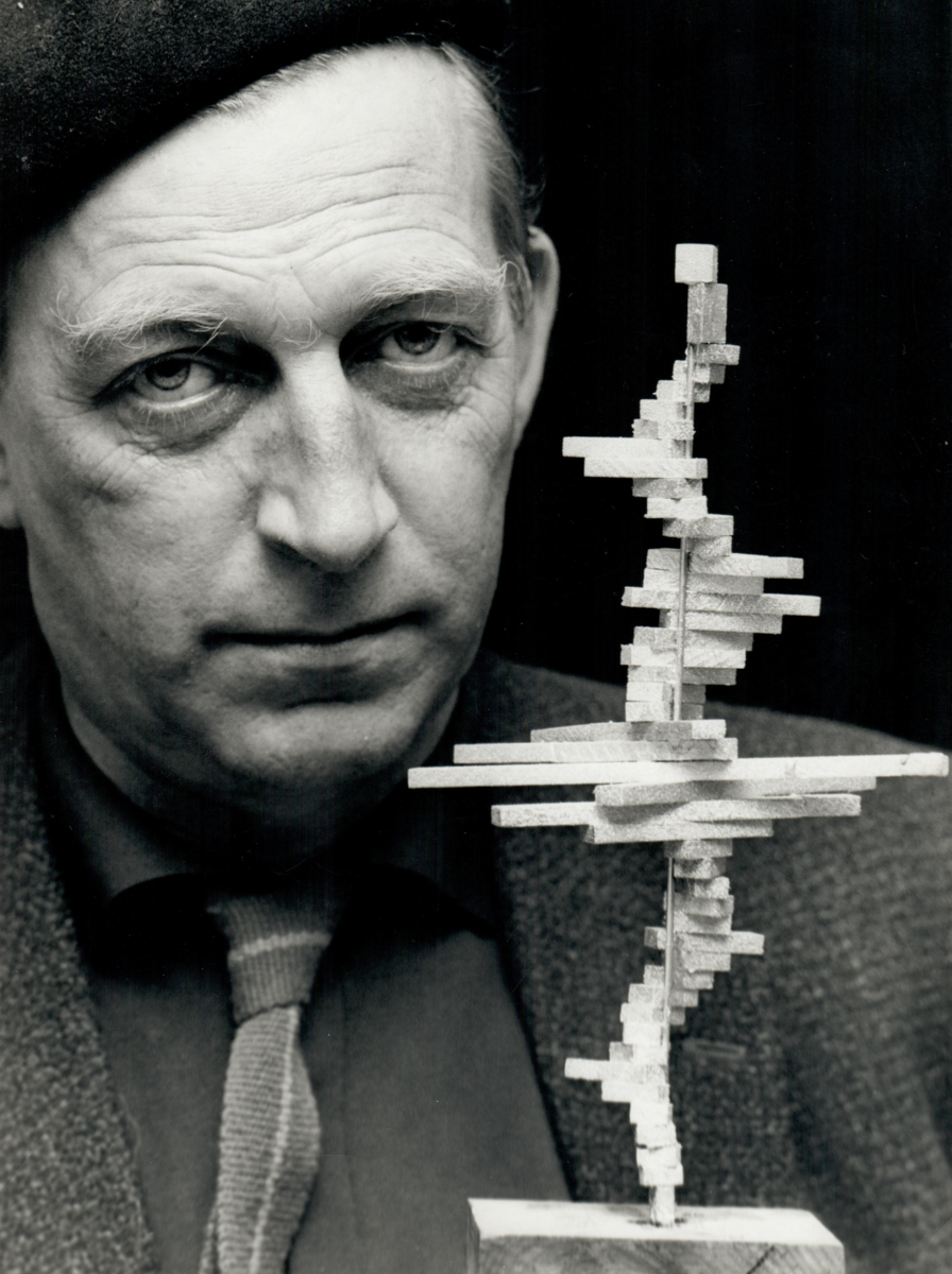 Arne Jones med modellen till skulpturen "Facettdans".