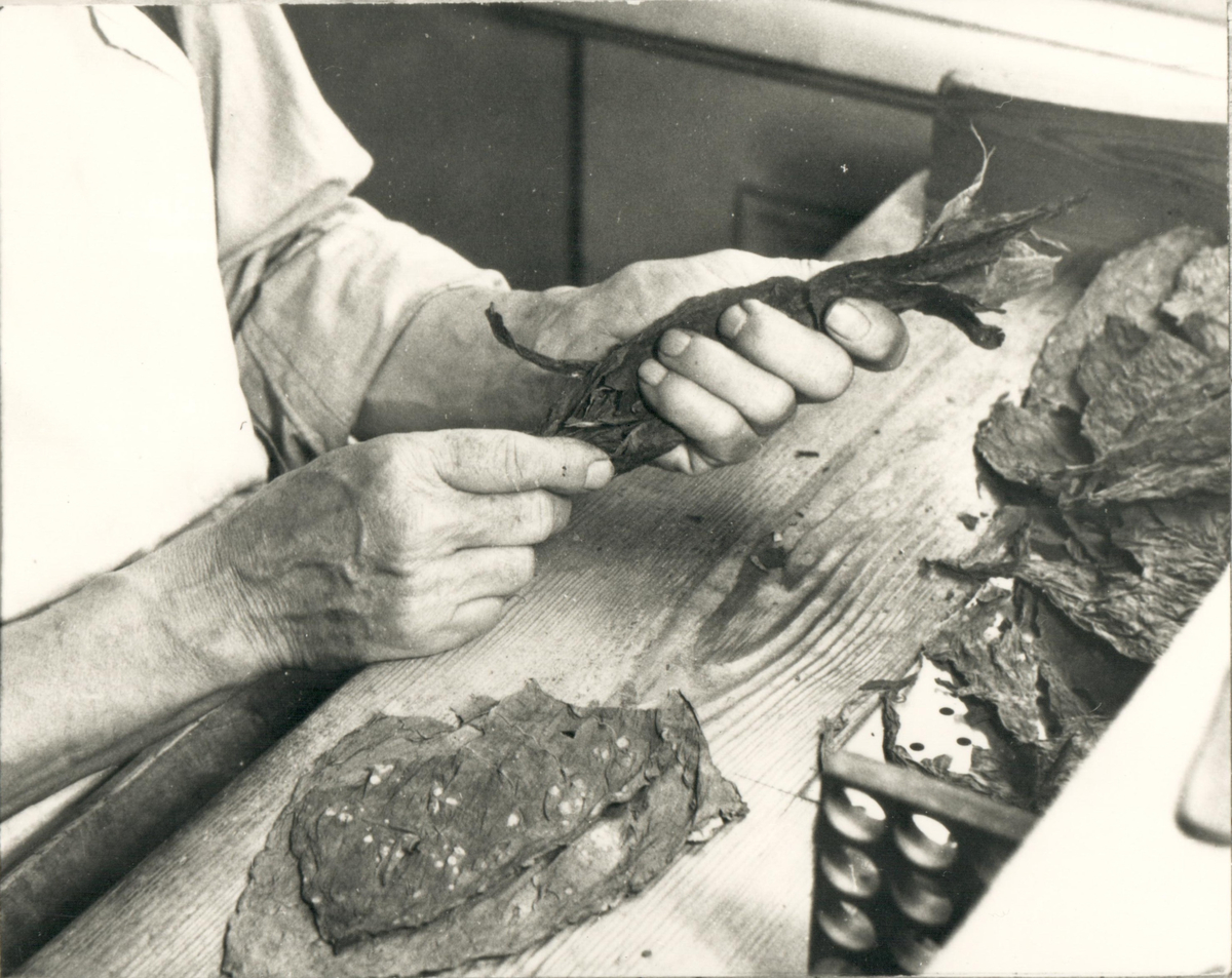 Cigarren formas av tobaksblad. Handtillverkning av cigarrer i Malmö.