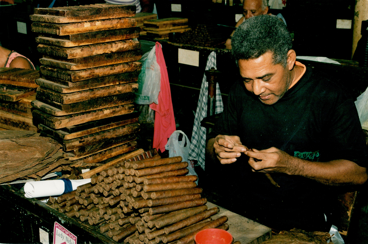 Cigarrtillverkningen inuti en kubansk cigarrfabrik.