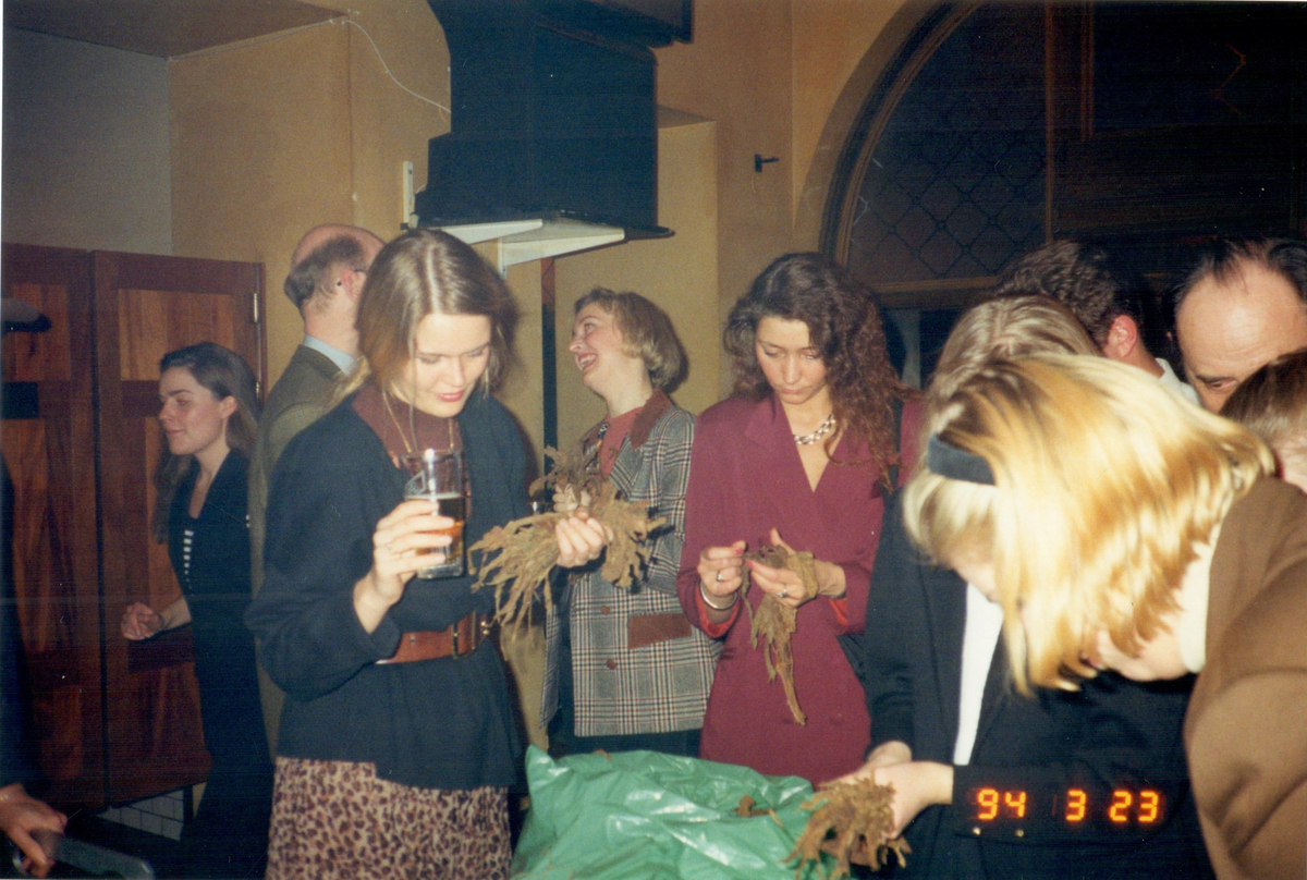 Torkad tobak hanteras av folk som närvarar på en cigarrkurs.