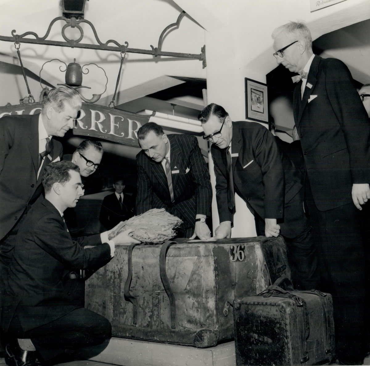 En torkad tobaksplanta studeras på Svenska Tobaksmonopolets museum.