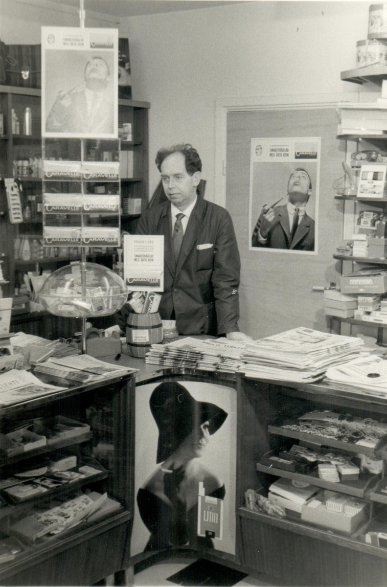 Reklam för Caravelle i F. Tångfeldts Tobak- & pappershandel, Månadsvägen 37, Jakobsberg.