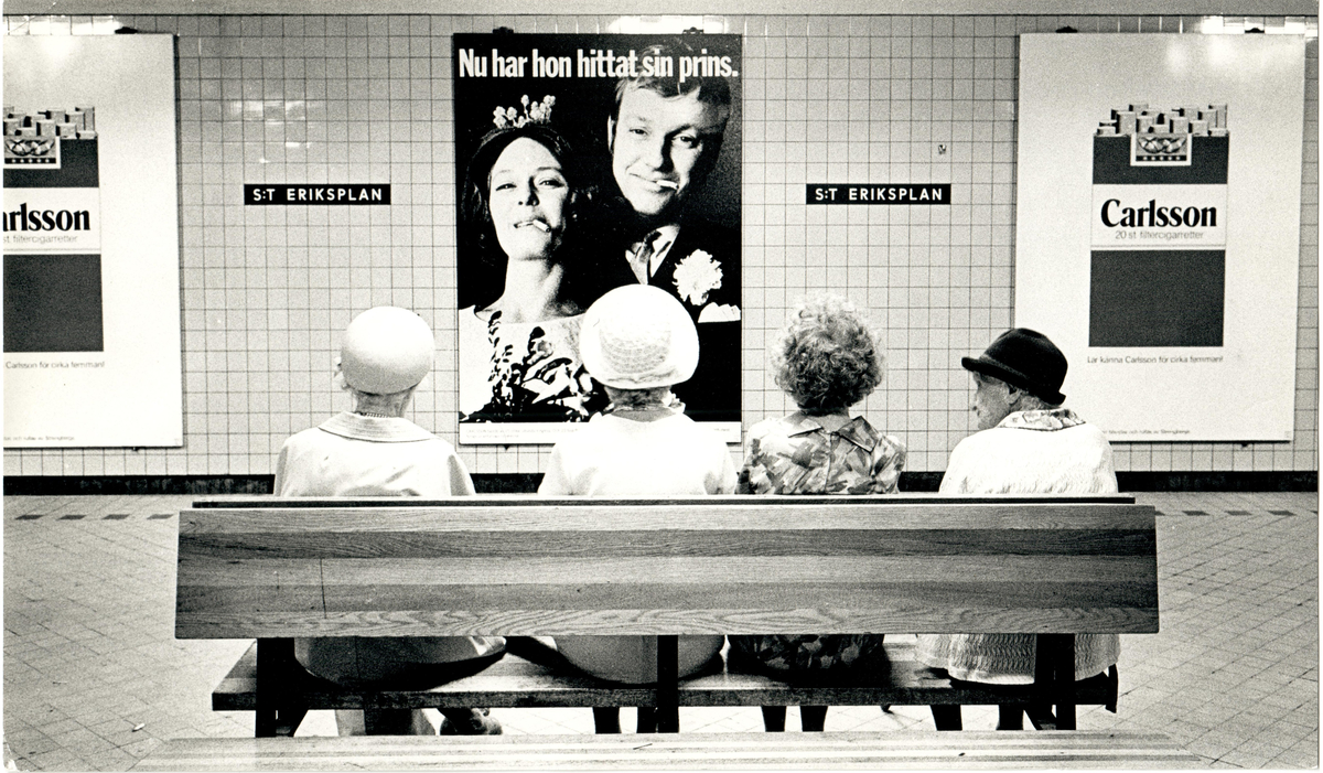 Utomhusreklam för cigaretter vid tunnelbanestationen S:t Eriksplan.