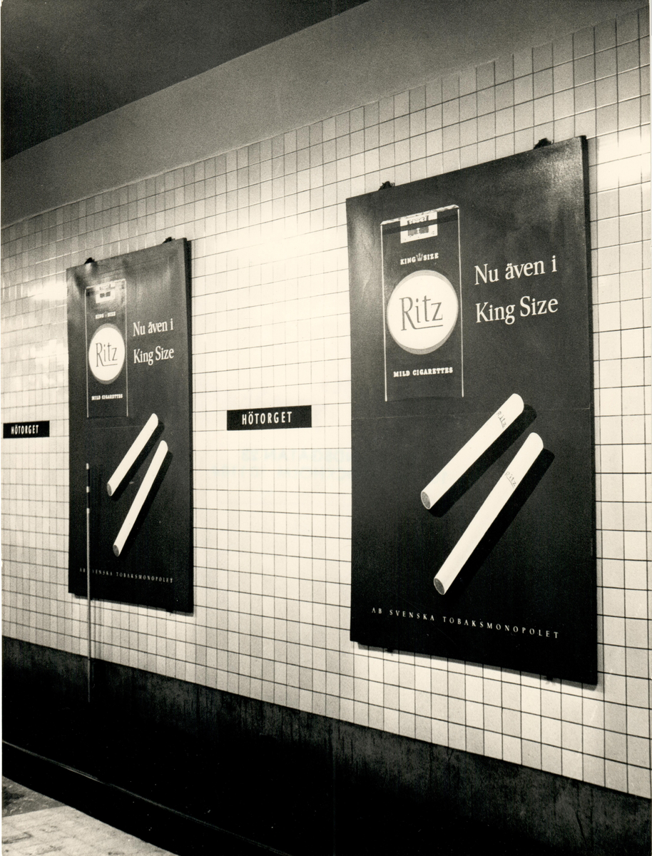 Utomhusreklam för Ritz-cigaretter vid tunnelbanestationen Hötorget.