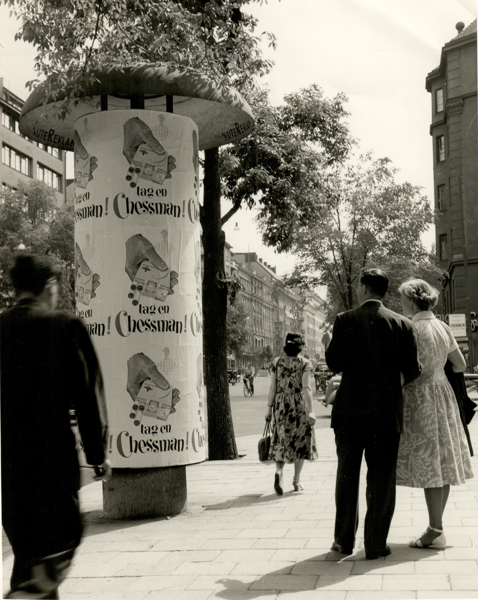 Reklam för Chessman-cigaretter vid Sveavägen.