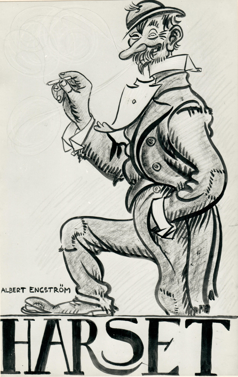 Harset-cigaretter, affisch av Albert Engström med figuren "Kolingen" illustrerad".