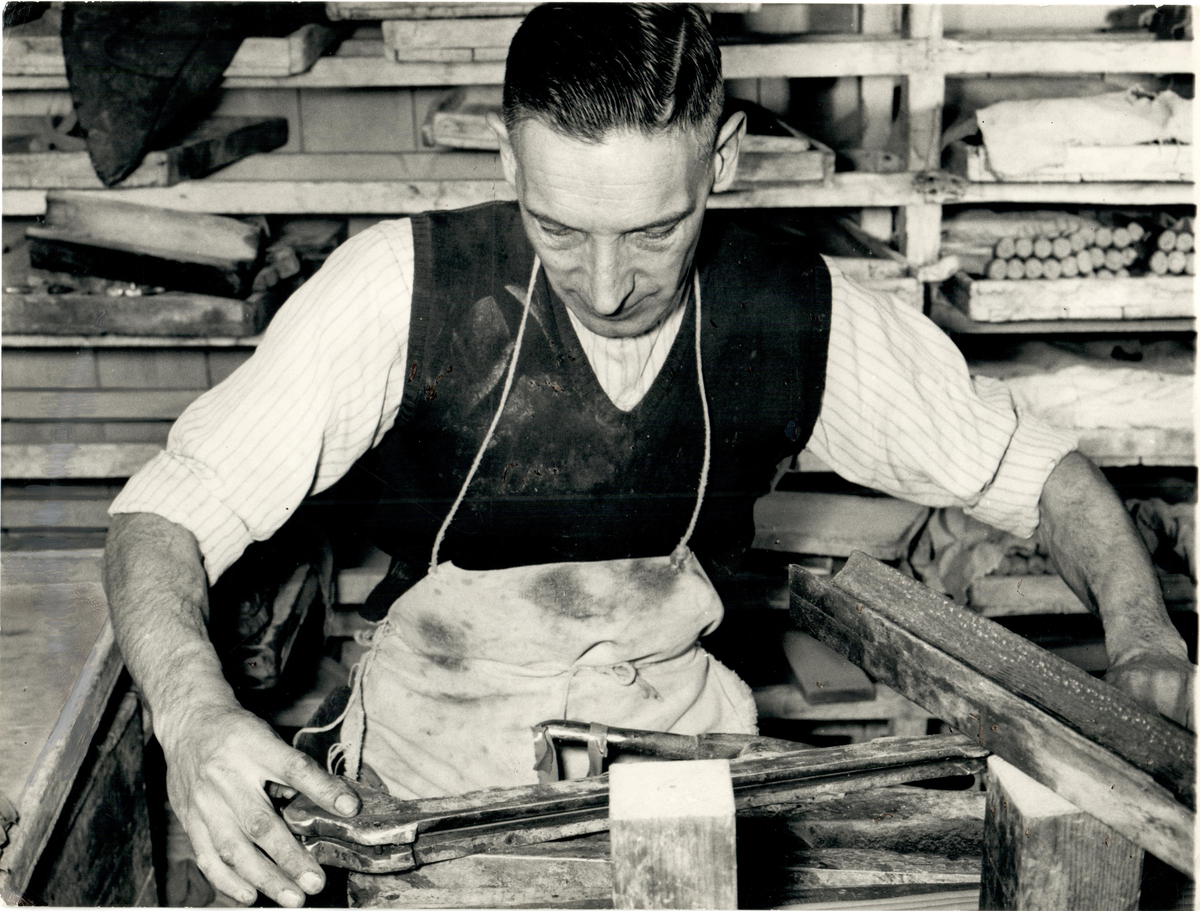 Här är en kritpipa klar att pressas i en metallform- en tillverkningsmetod som är flera hundra år gammal.