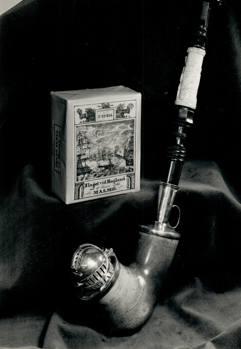 En tobakspipa och ett paket röktobak.