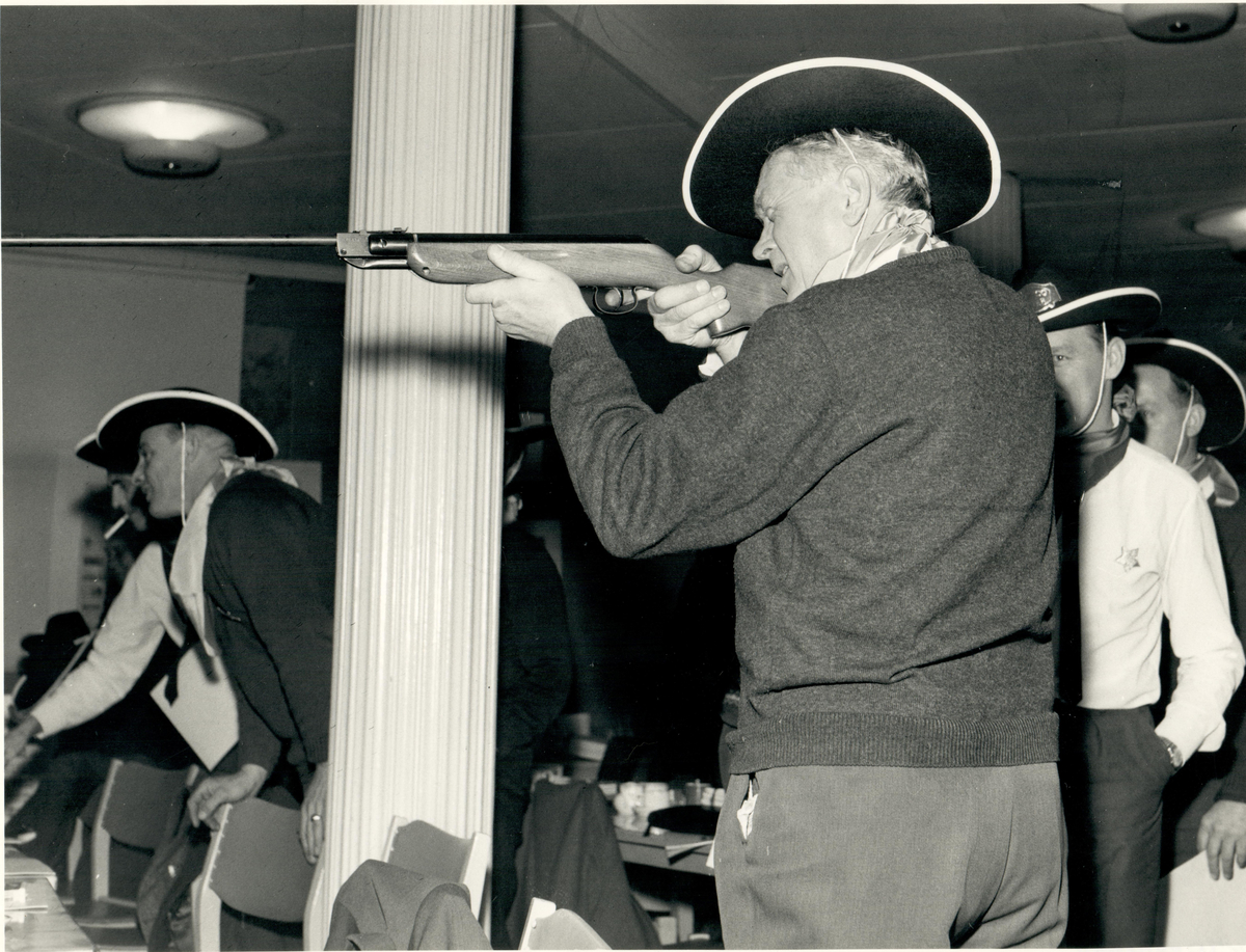 En man siktar med ett gevär på Sheriffs representantsträff i Oslo 1968.