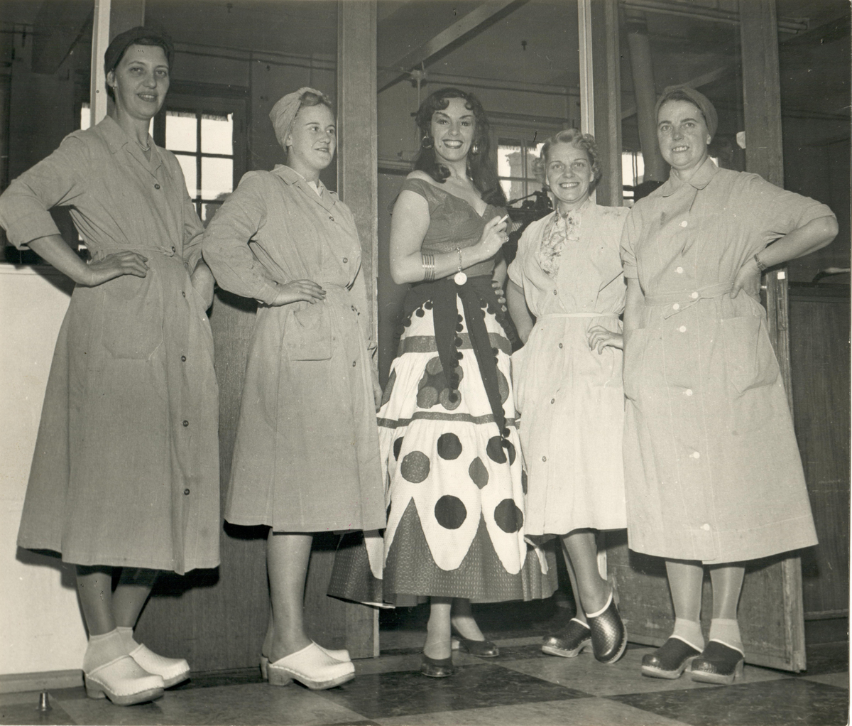 Operasångerskan Kerstin Meyer på besök vid Stockholmsfabriken, 50-tal.