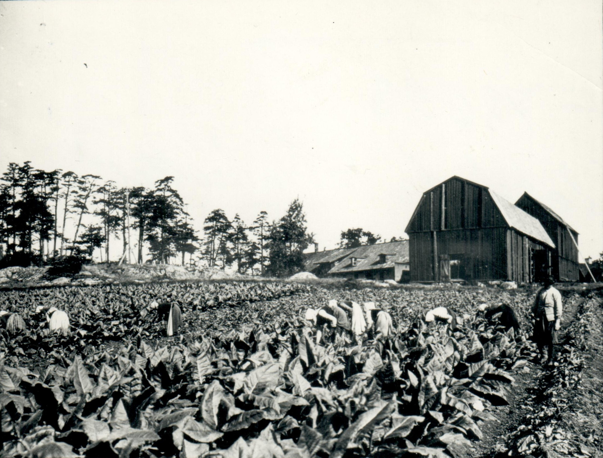 Stenbrottet, Solna, tidigt 1900-tal. Tobaksodling och tobakslada.