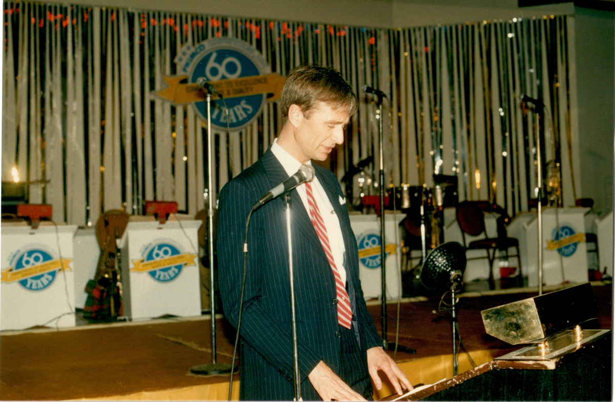 H.Larsson håller tal vid 60-års jubileets galamiddag.