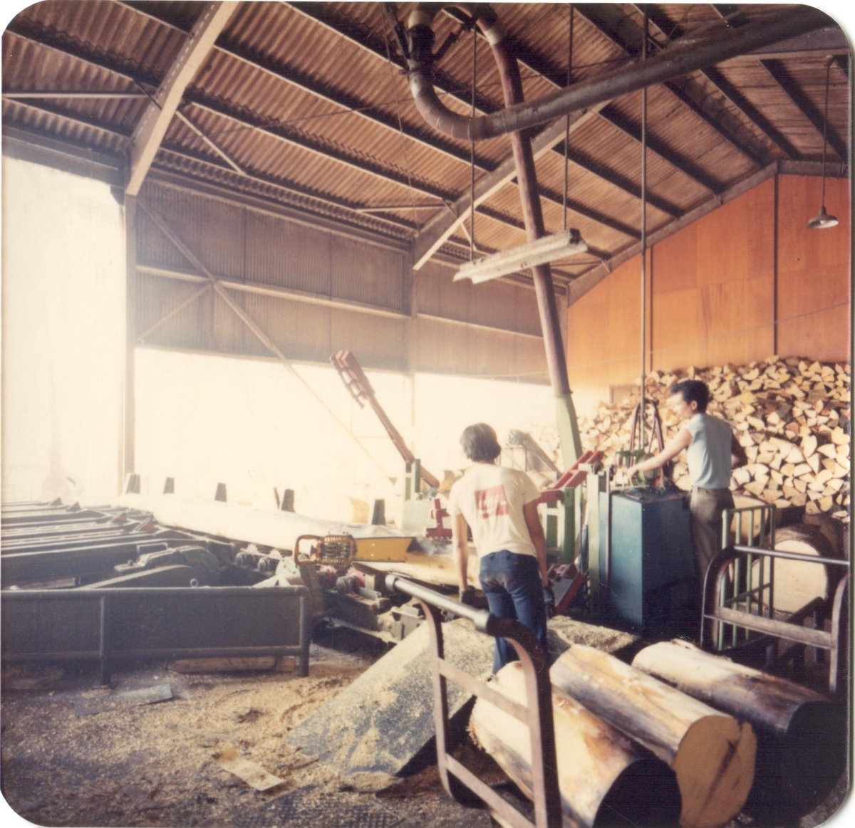 Sågverket vid Phimco-fabriken. Tändsticksproduktion.