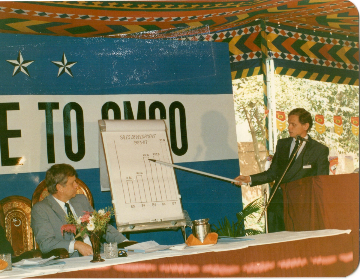 Henrik byström, VD för Orient Match presenterar företagets snabba försäljningsutveckling för Hans Hedlund, vice VD för Swedish Match konsumentprodukter.