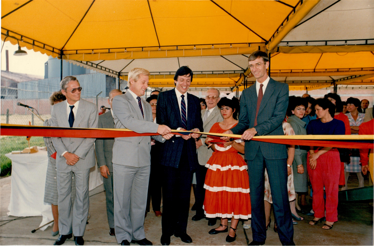 Invigning. Besök vid fabriken i Mosquera. Colombia, 1980-tal.