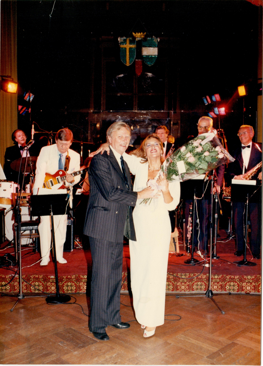 Rolf Björch och Sylvia Vrethammar i Argentina. Kompband i bakgrunden.