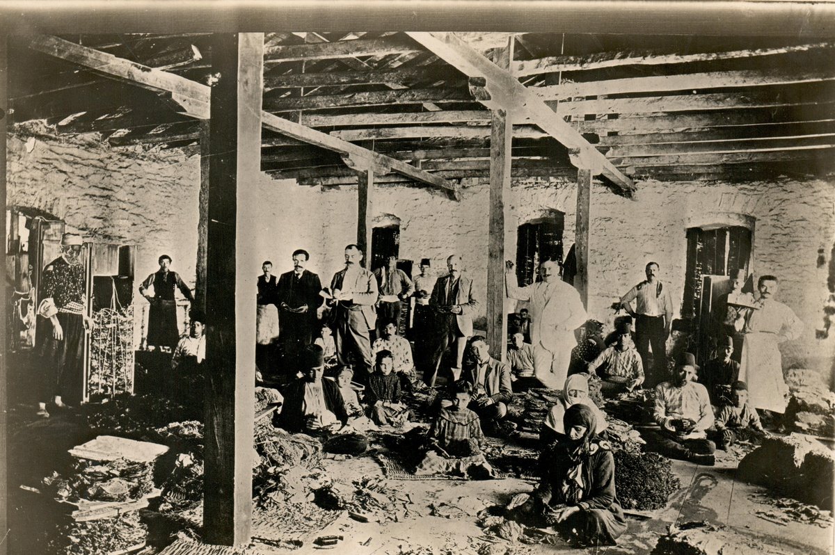 Tobakshantering. Kavalla, Grekland. Tobaksindustri.