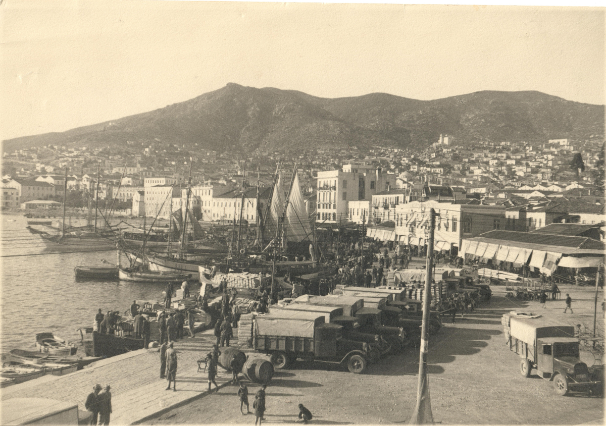 Hamnen i Kavalla. Vykort.