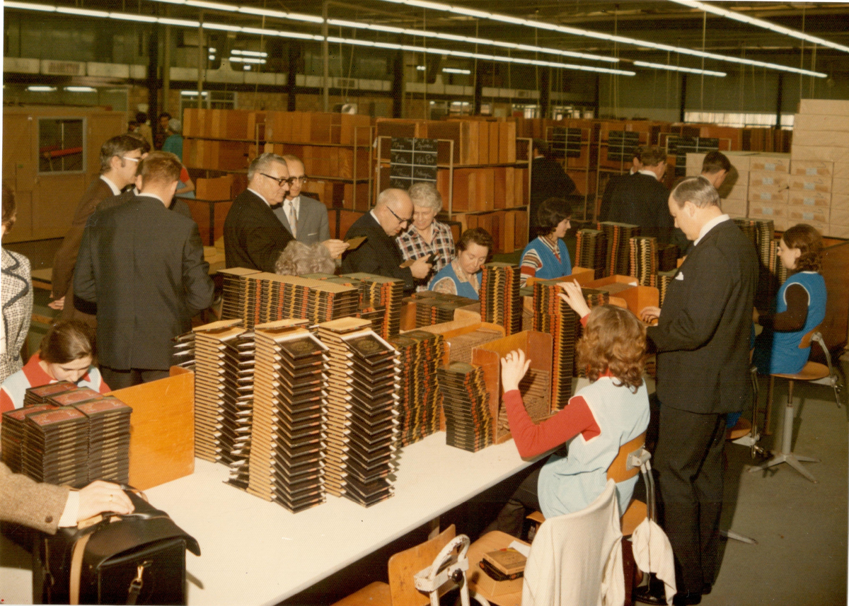 Färdiga cigarrlådor inuti ciarrfabriken i Houthalen 1972.
