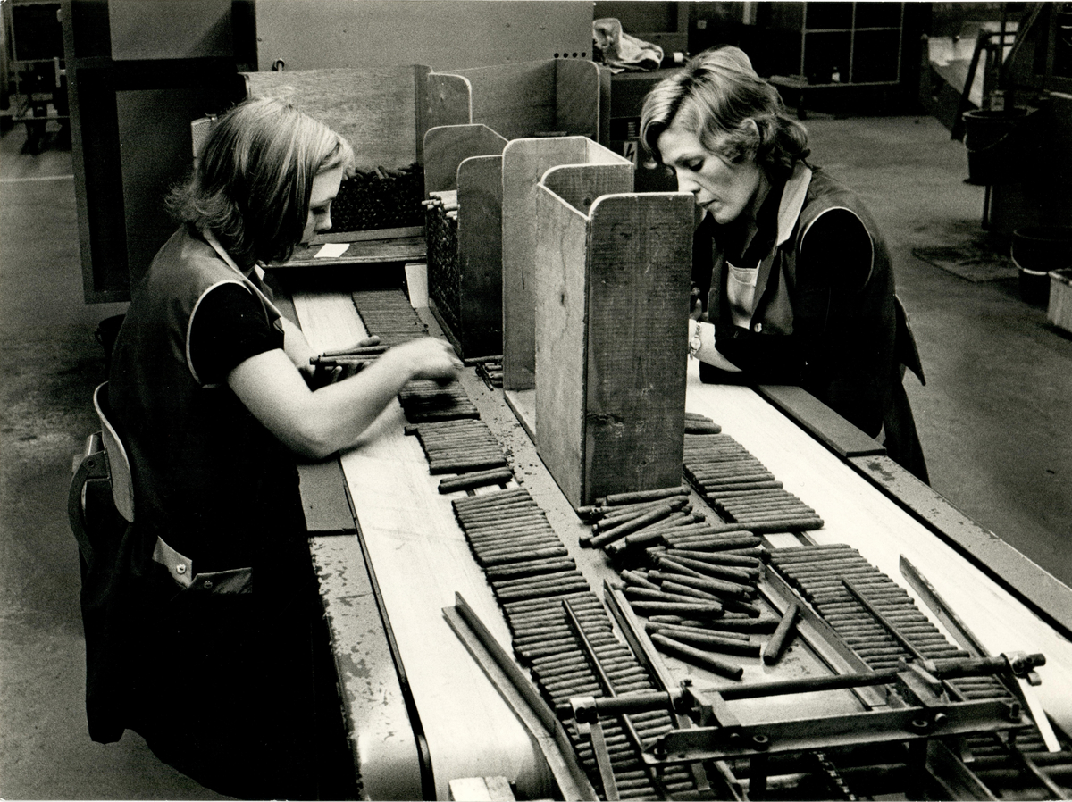 Inifrån cigarrfabriken i Houthalen, Belgien.