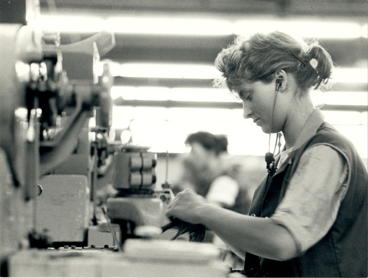 Fabriksarbetare inuti cigarrfabriken i Houthalen, Belgien.