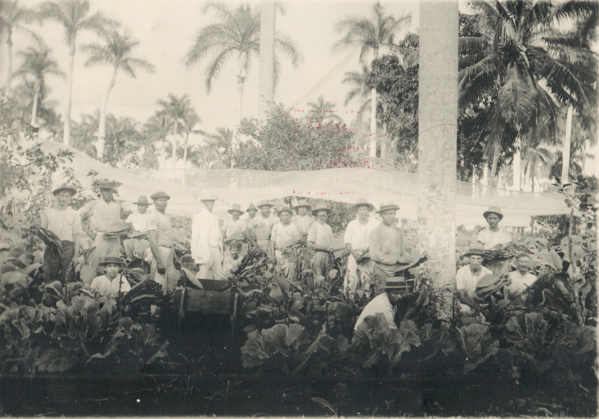 Kubanska tobaksarbetare arbetar i ett tobaksfält.