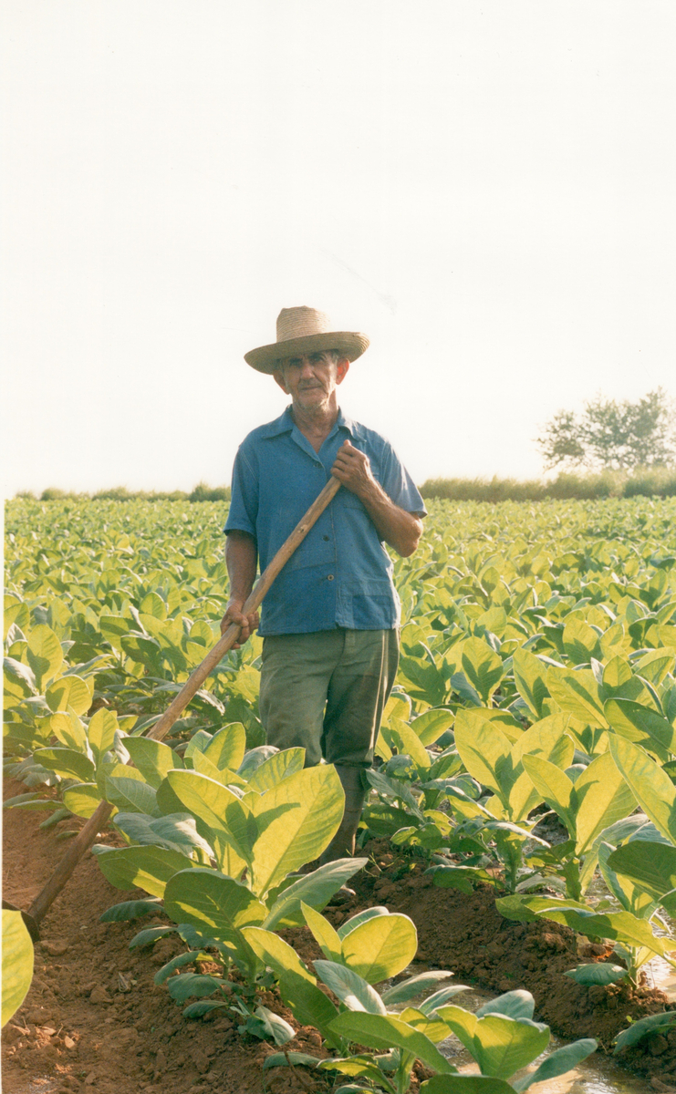 En kubansk tobaksodlare ståendes vid ett tobaksfält.