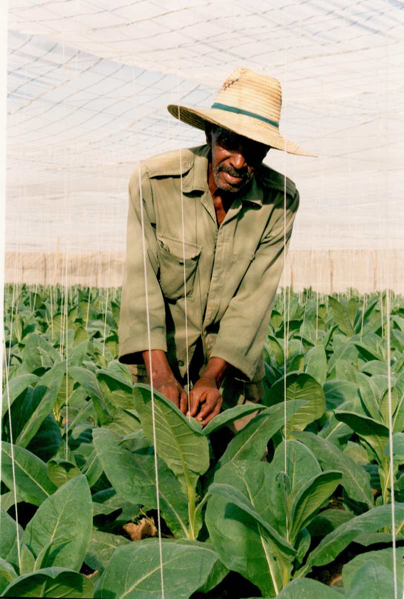 En kubansk tobaksodlare jobbar på en tobaksodling.