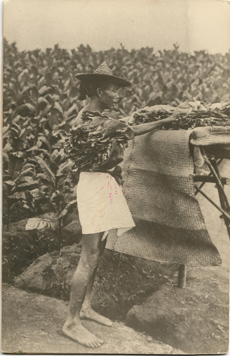 En kinesisk kuli arbetar vid en tobaksodling i Indonesien.