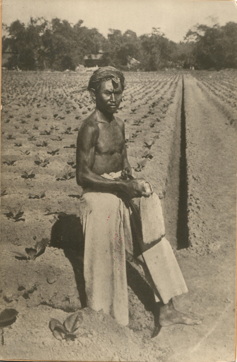 En tobaksodlare står vid en tobaksodling i Indonesien.