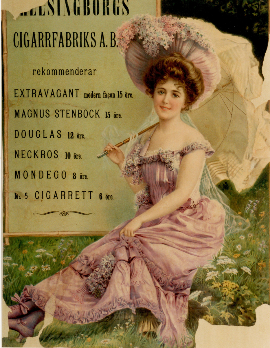 Etikett som ska sitta på cigarrmärken tillverkade av Helsingborgs Cigarrfabriks A.B.