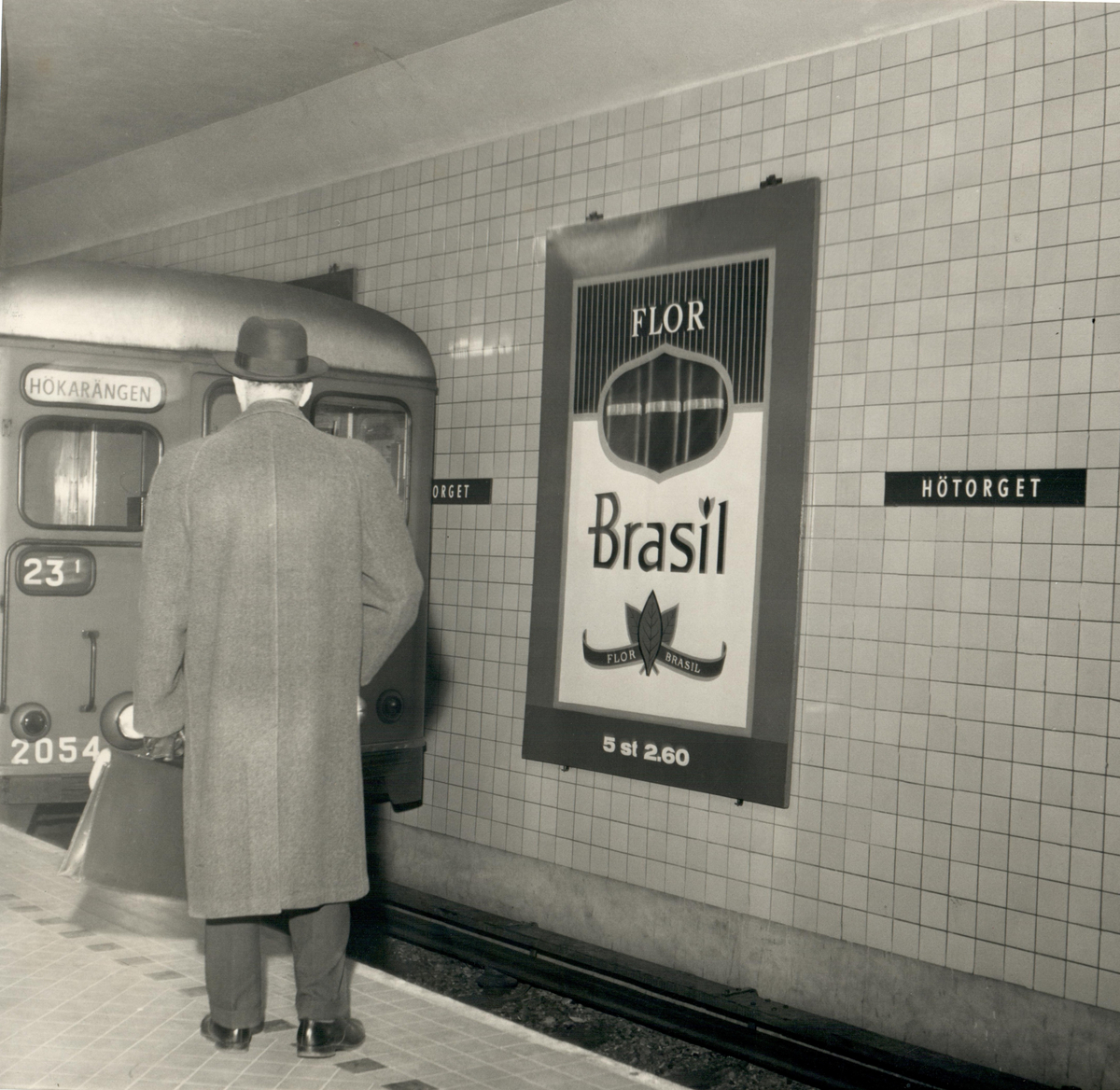 Reklam i tunnelbanestationen vid Hötorget för cigarrer från Brasil.