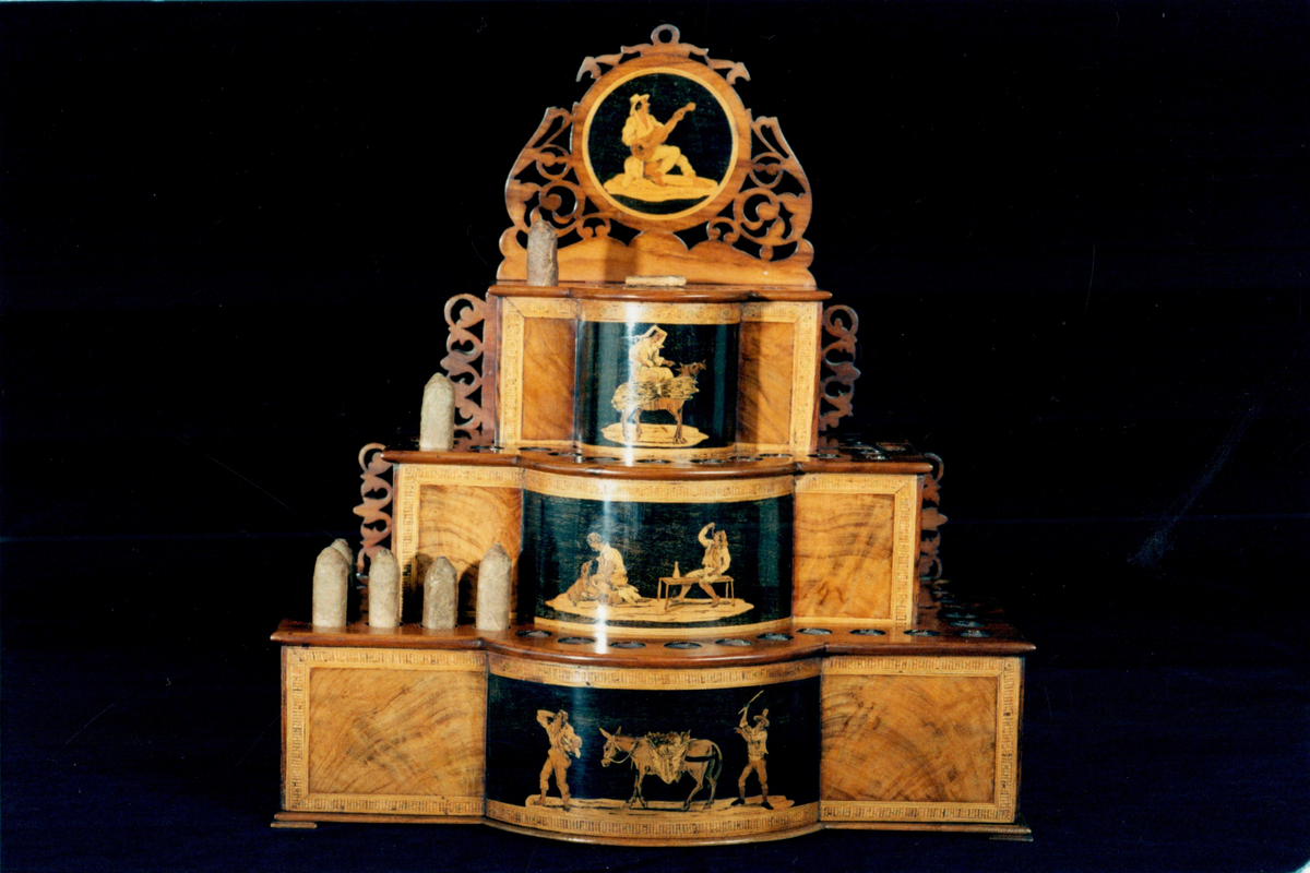 Bordsskåp i intarisa med funktionen som en cigarrbehållare.