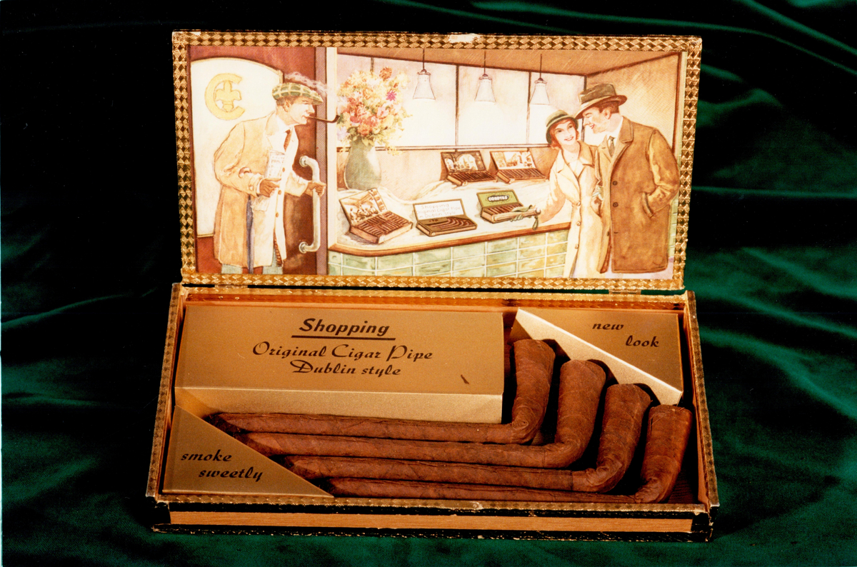 En låda fylld med cigarrpipor.