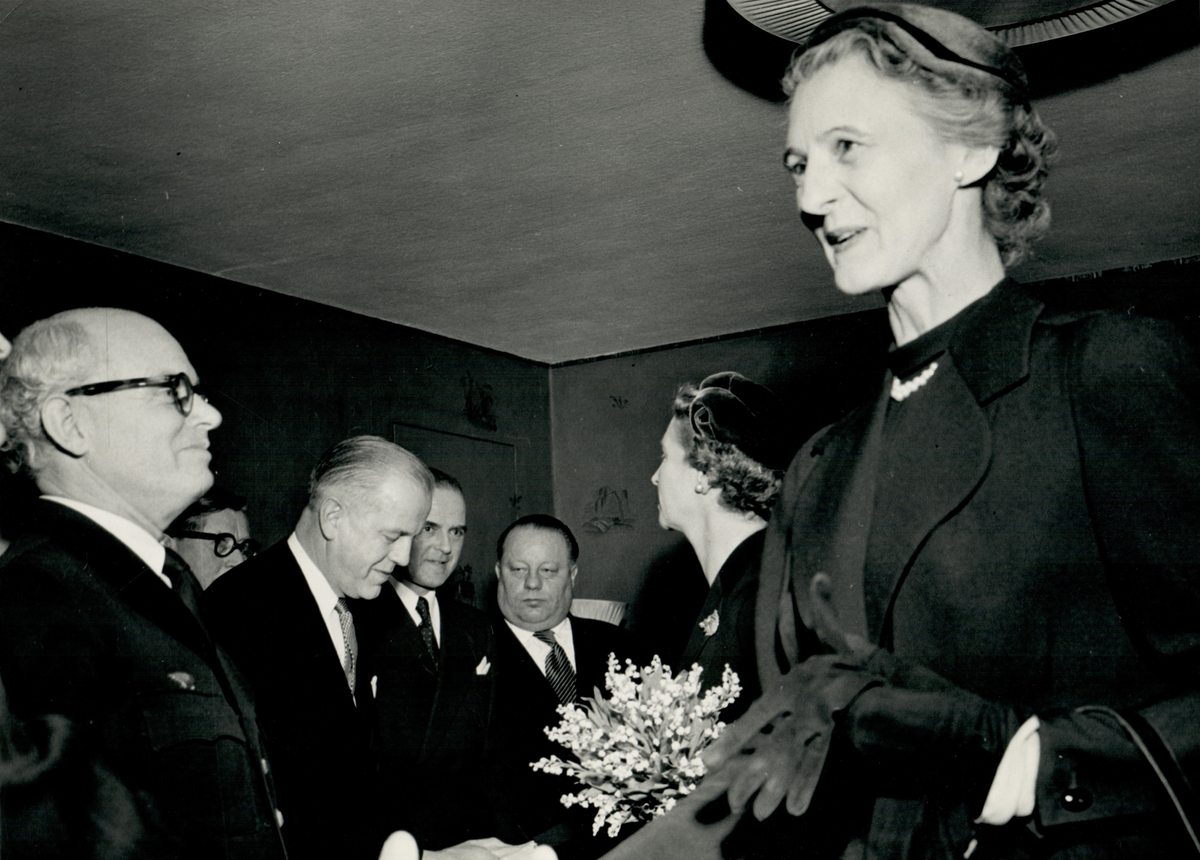 Den bakre kvinnan håller i en större bukett liljekonvalj.