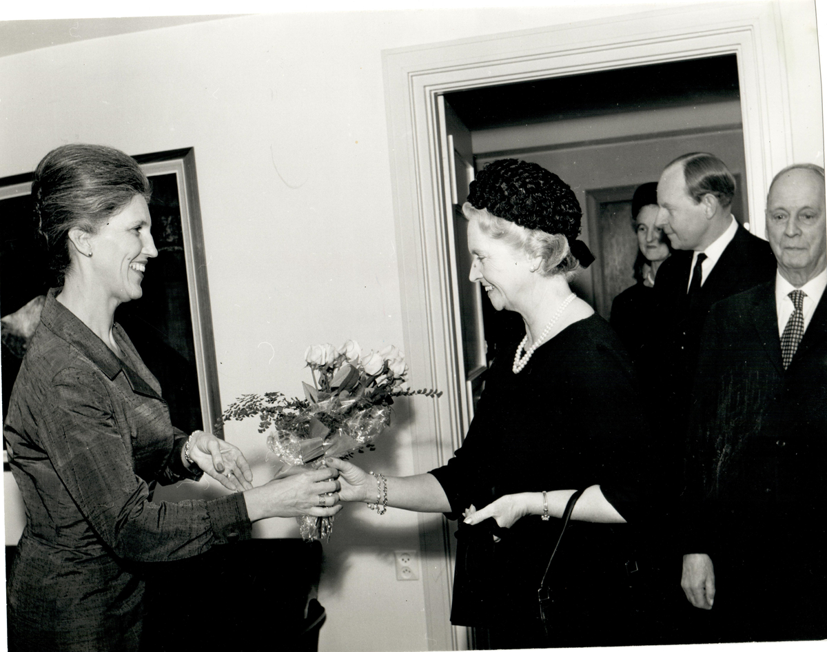 Prinsessan Sibylla tar emot en blombukett.