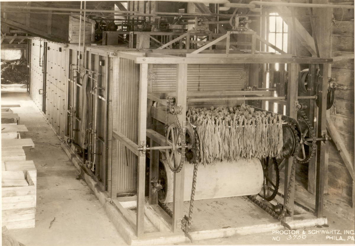 Industrimaskin för tobakstorkning tillverkad av Proctor & Schwartz.